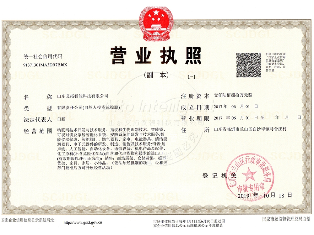 山東艾拓智能科技有限公司是以設(shè)計、研發(fā)、生產(chǎn)、銷售、服務(wù)為一體的綜合性新型企業(yè),我們一直致力于生產(chǎn)智能水表、智能電表、智能燃?xì)獗?、超聲波熱量表等四大系?0余款產(chǎn)品,公司注冊資金1680萬元,占地6000余平。